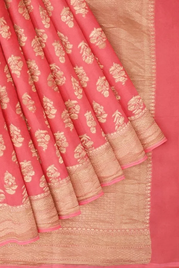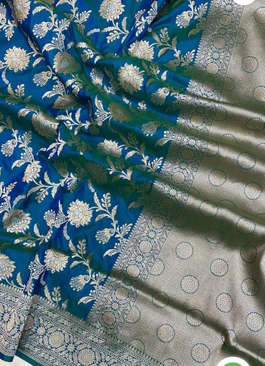 Patterns inspired by Mughal art and floral motifs give Banarasi sarees their iconic charm.