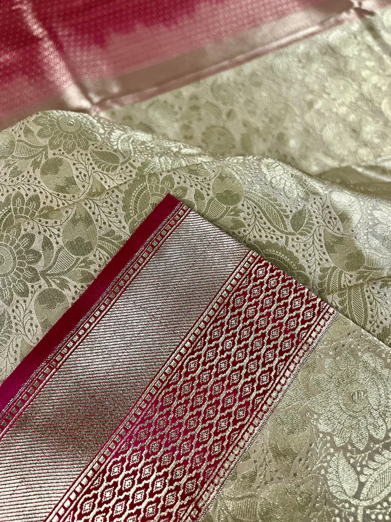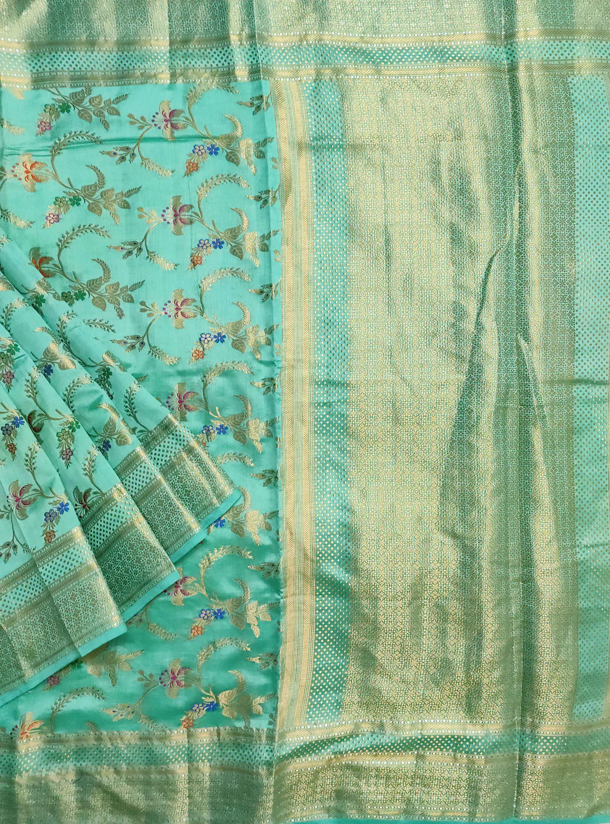 Each saree is adorned with gold or silver threads, adding elegance to every weave.